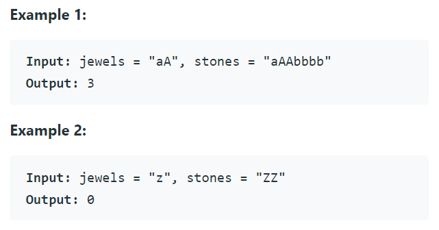 jewels는 보석이고, stones는 갖고 있는 돌일때, stones에는 보석이 몇 개나 있을지 구하는 문제입니다. 이때 대소문자는 구분합니다.