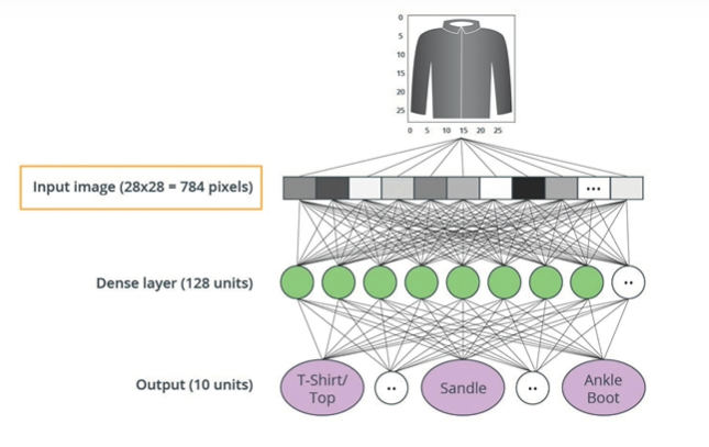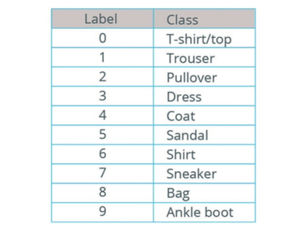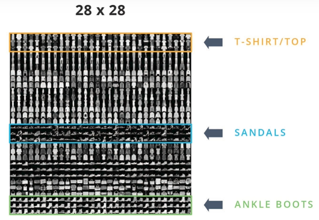 - Each image is 784 (28 * 28) bytes. So our job is to create a neural network that takes the 784 bytes as input, and then identifies which of the 10 different items of clothing the image represents.